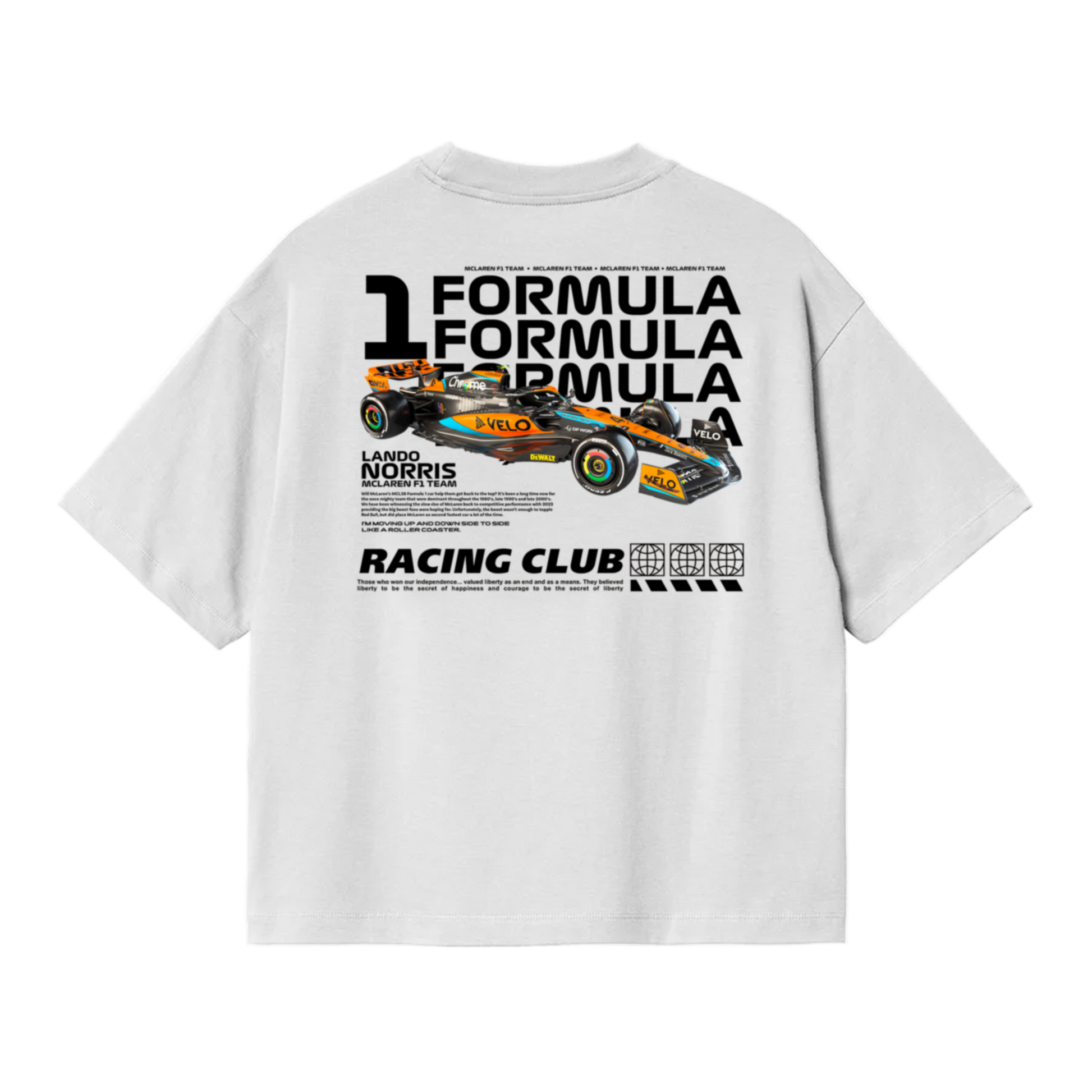 Lando Norris Racing Club oversized majica donosi prepoznatljiv McLaren F1 stil i energiju jednog od najtalentovanijih vozača današnjice. Upečatljiv print bolida i 100% nebrušeni pamuk daju savršenu kombinaciju udobnosti i sportskog izgleda. Idealna za fanove Norrisa, trka i modernog streetwear-a.
